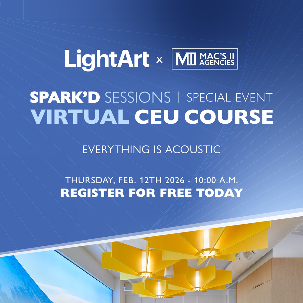 Join us for a special Spark’d Sessions virtual CEU course designed for architects, interior designers, and specifiers who want to deepen their understanding of acoustic design.